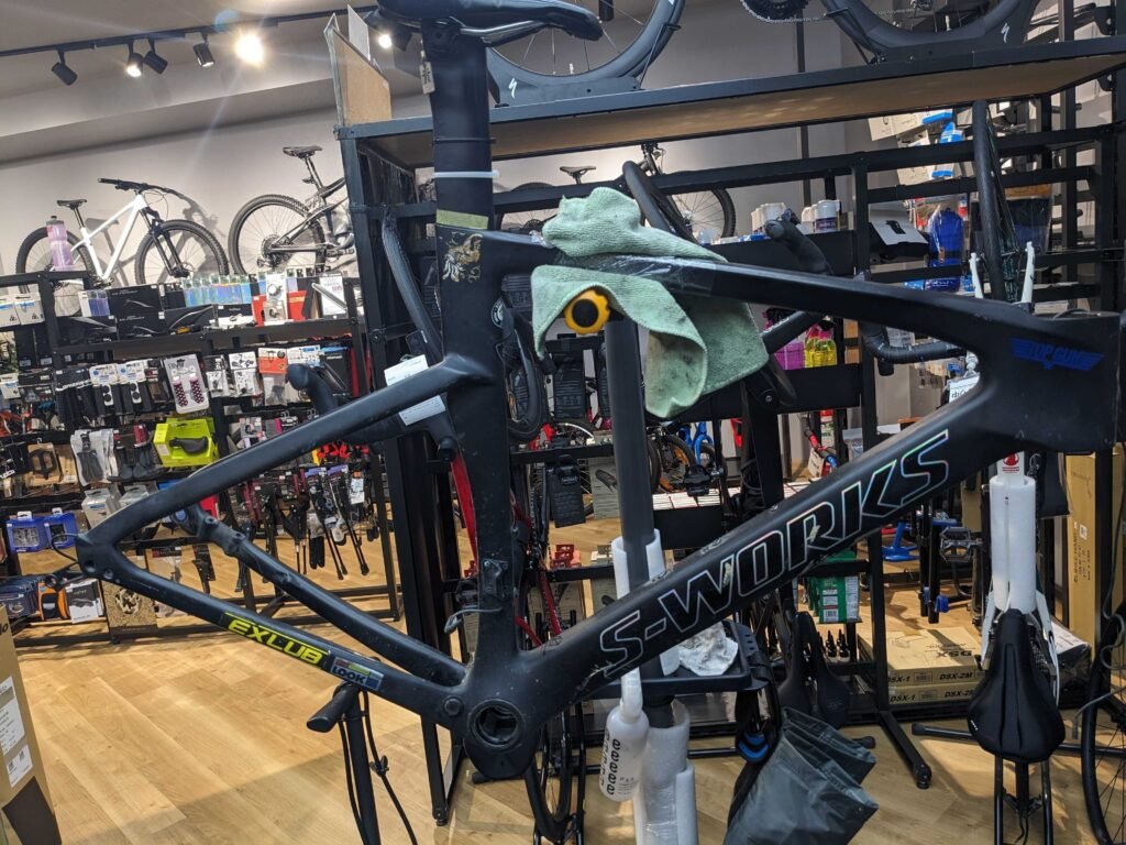 普段のクリーニングでは触れないBB(ボトムブラケット)、ハブ、ヘッドパーツ、ディスクブレーキキャリパーなどの内部まで作業します。