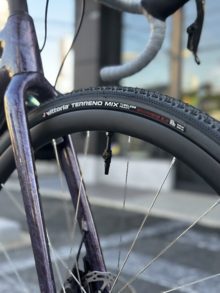 王道のCXタイヤをチョイス。さらに万が一の事態に備えタイヤインサートを入れました。