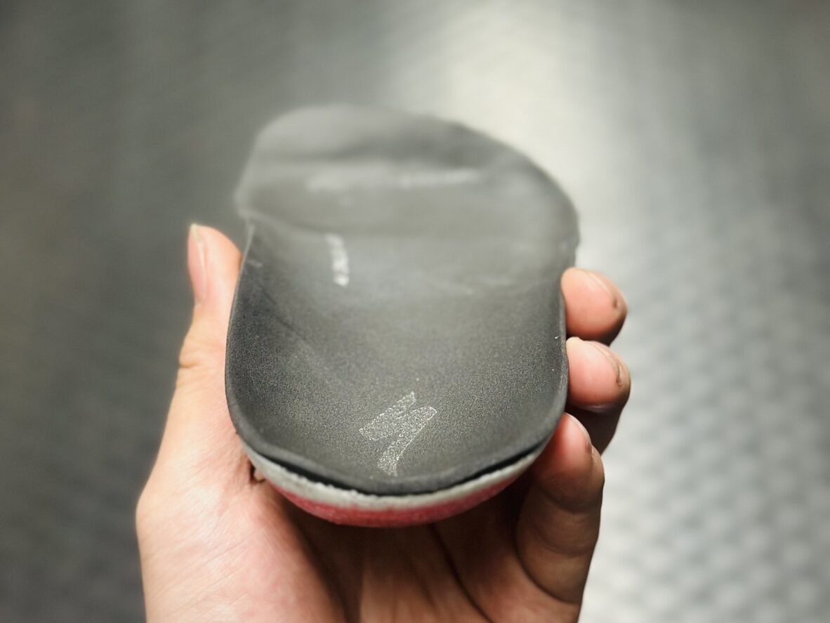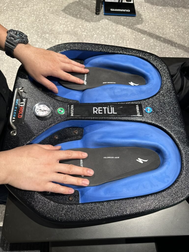 スペシャライズドでは、専用の測定と成形を行い、足裏を立体的にサポートします。