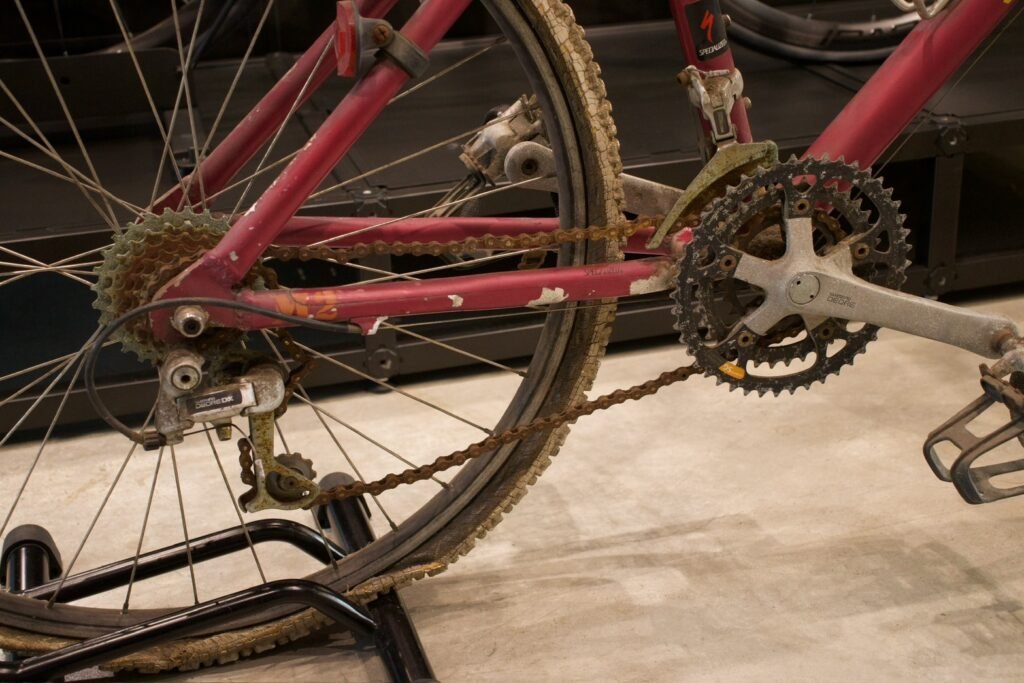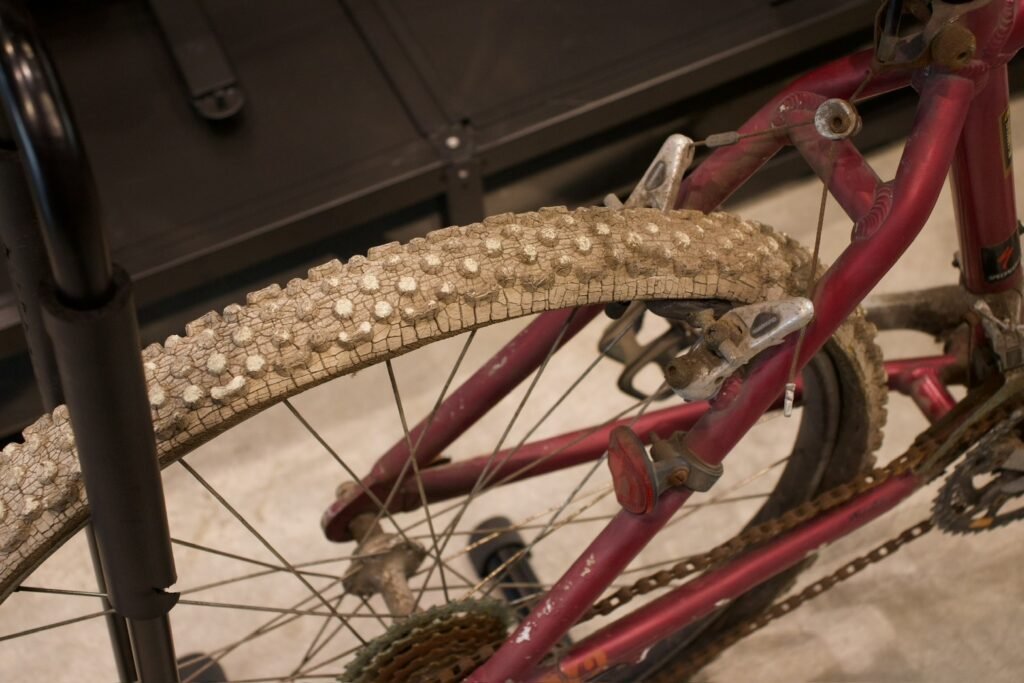 オーバーホール前の状態は、タイヤの劣化やコンポーネントの錆がかなり酷い状態です。