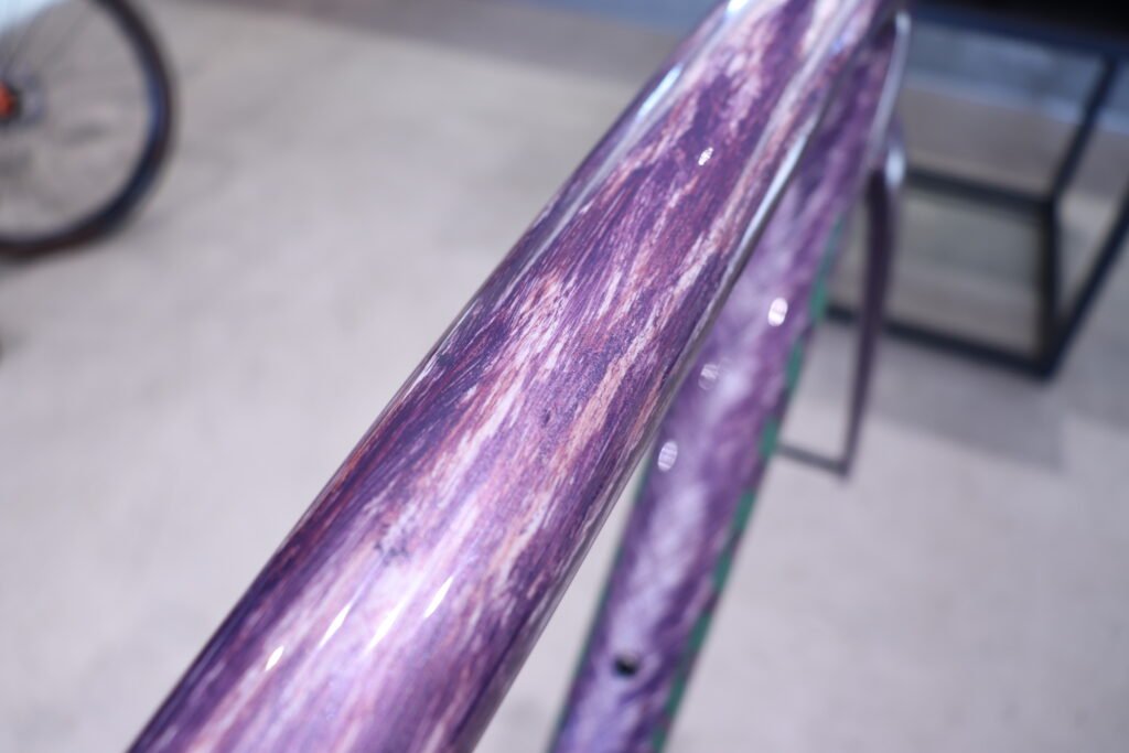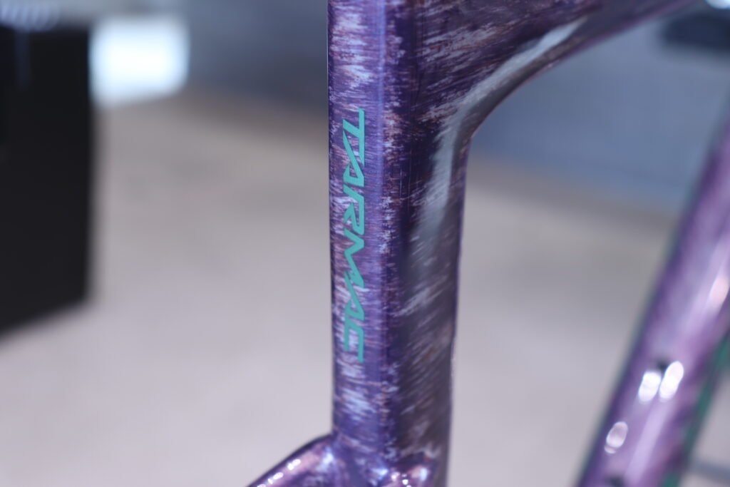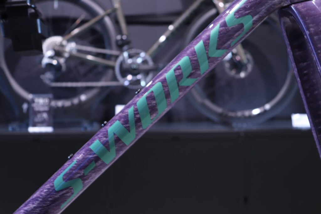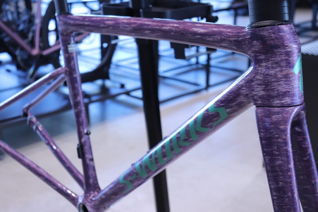他のS-WORKS TARMAC SL8 フレームセットがストレートなレーシングカラーだとすれば、このグロスドロマイトメタリックは