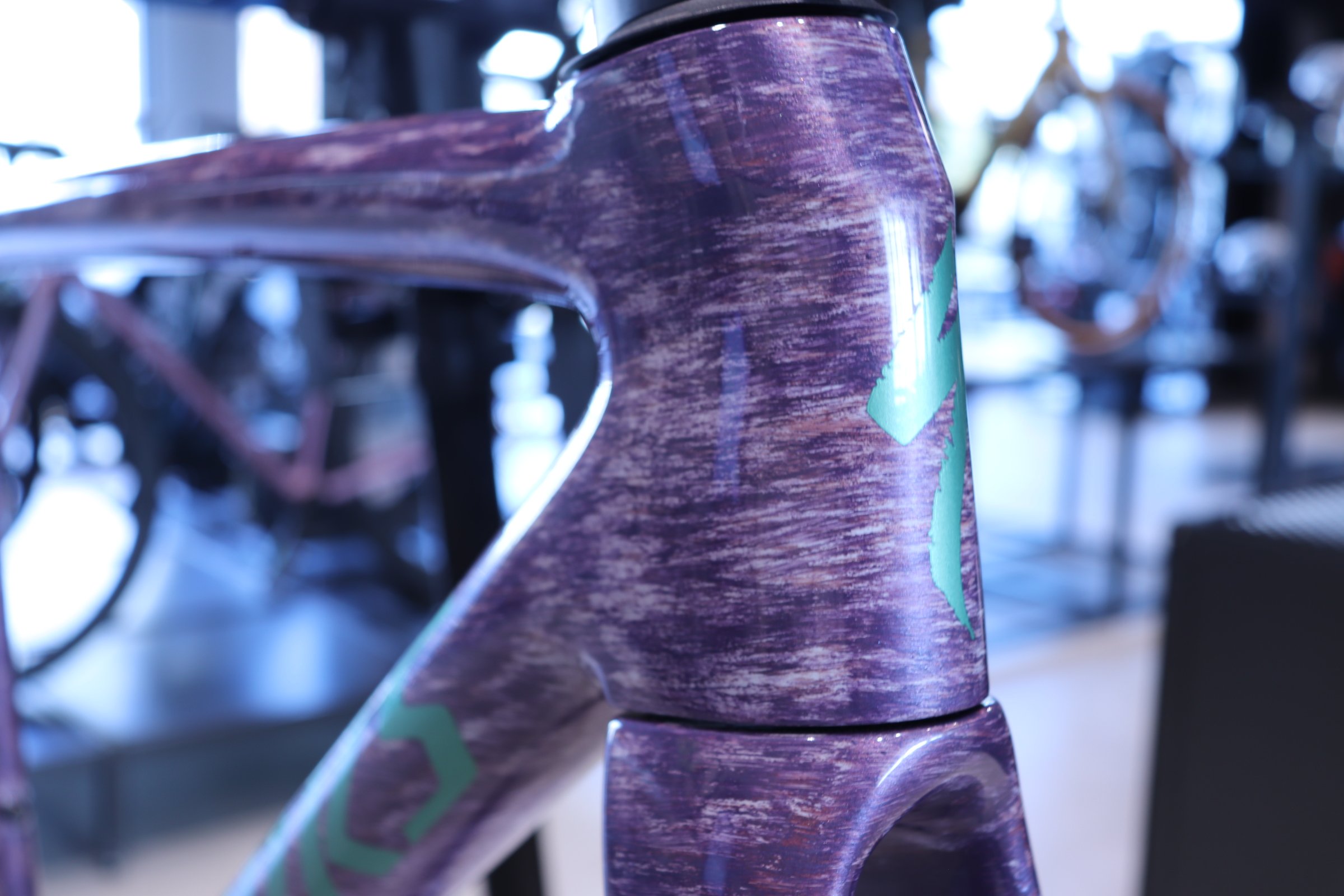他のS-WORKS TARMAC SL8 フレームセットがストレートなレーシングカラーだとすれば、このグロスドロマイトメタリックは
