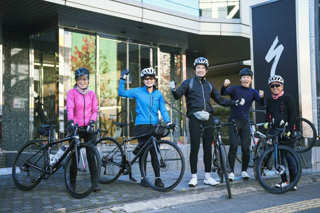 スペシャライズド仙台泉のビギナーズライドは、ロードバイクに乗り始めてから1年以内の方を対象にユックリノンビリ走るサイクリングイベントです。イベント参加時に必要となる手信号や集団走の練習をしながら、皆で楽しく走ります。今回のルートはスペシャ仙台泉店〜朝日〜寺岡山〜フラットホワイトコーヒー〜スペシャ仙台泉店の、全行程20km弱のコースでした。比較的交通量も少なく、景観もじっくり楽しめるコースを設定しております。