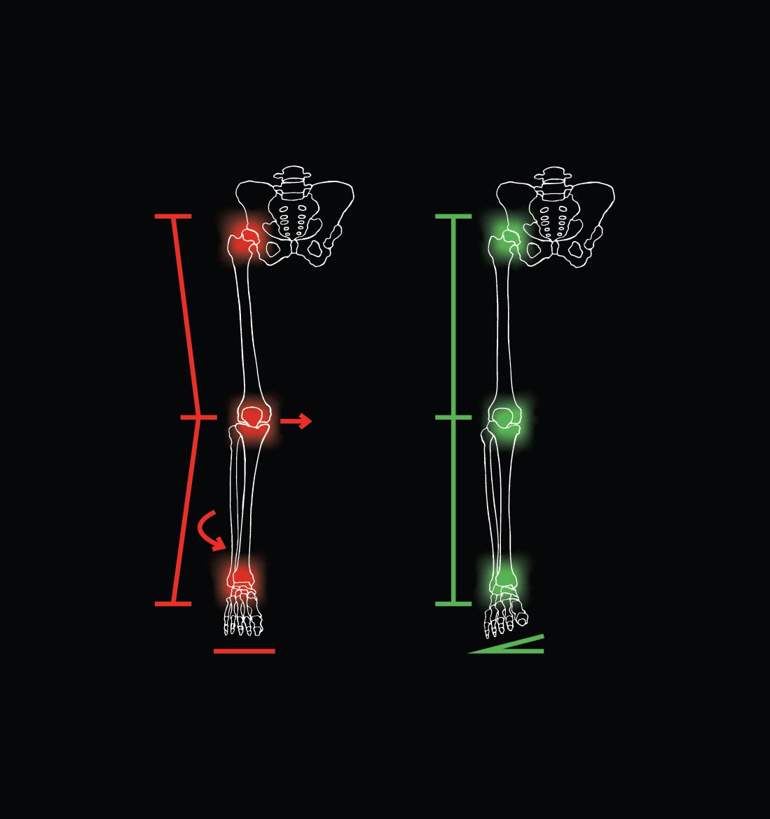 1.5mmの内反ウェッジをアウトソールに組み込み、股関節、膝、足のアライメントを一直線に整える