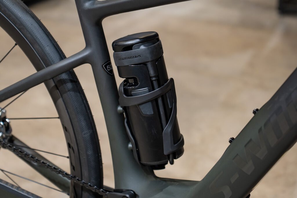 フレームカラーはフォレストグリーン/カーボン。マットな塗装と、静かに浮かび上がるグロスのS-Worksロゴが戦闘機のような重厚感を演出。