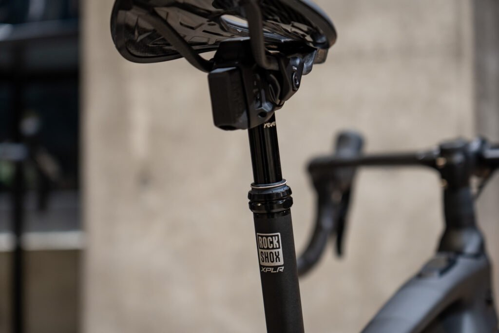 シートポストにはSRAM Reverb AXS XPLR ドロッパーシートポストを装備。下り坂での安定感や、乗り降り時の利便性が上がるパーツです。