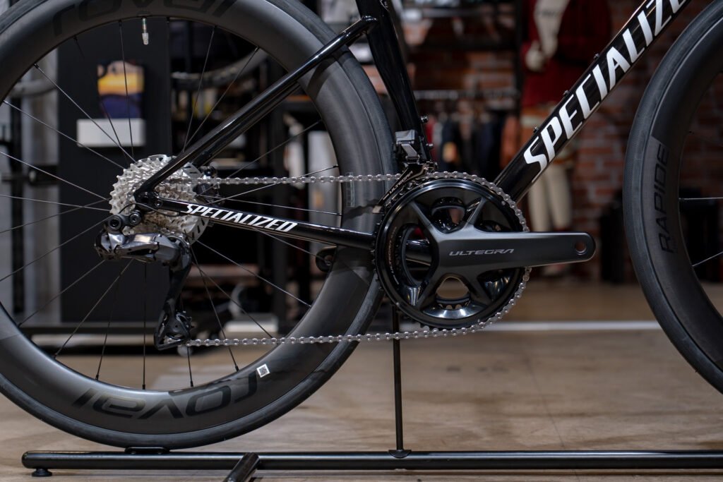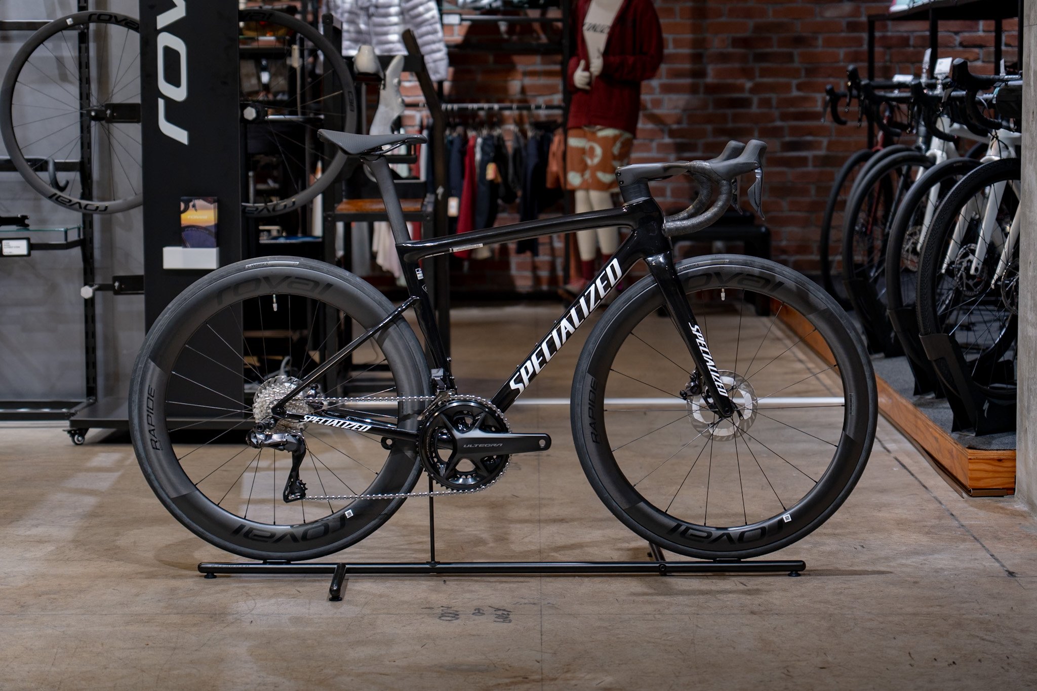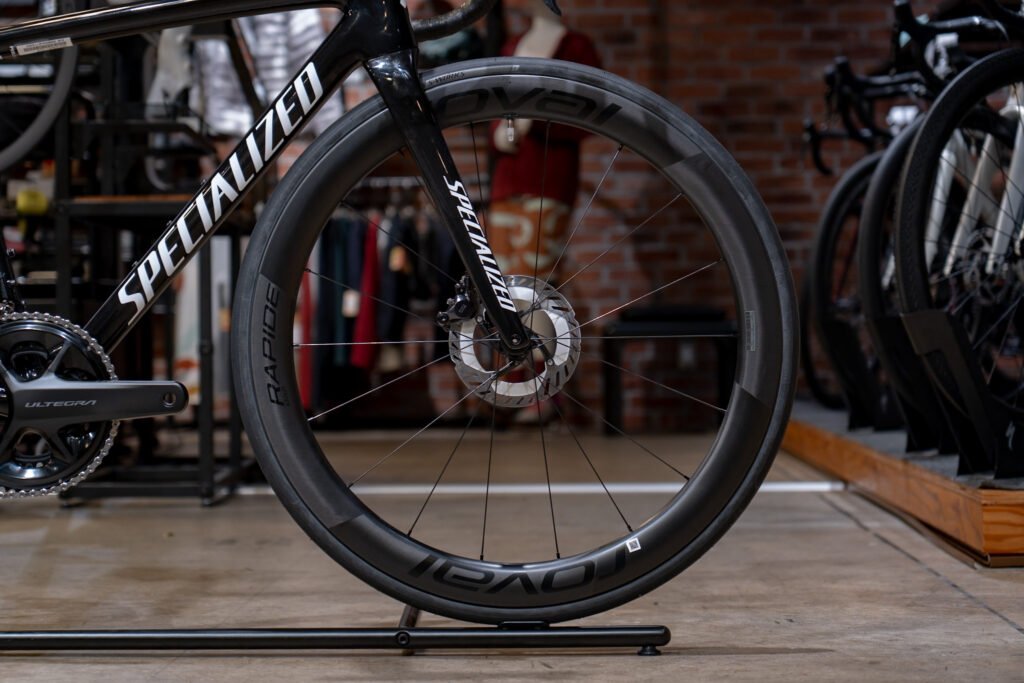 ホイールはRoval Rapide CL II。上位モデルであるRoval Rapide CLX IIと同じリムを採用することで、空力と軽量性を両立させたモデルです。