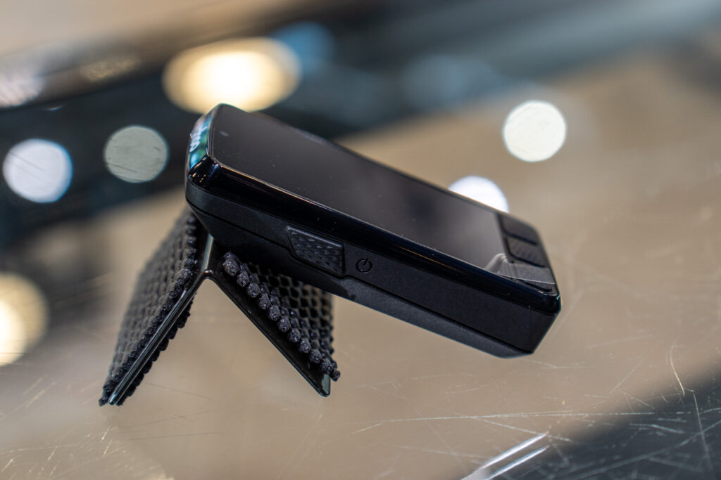 筐体側面の物理ボタンも前世代を踏襲。グローブ着用時でも操作性を失わない凸ボタンです。