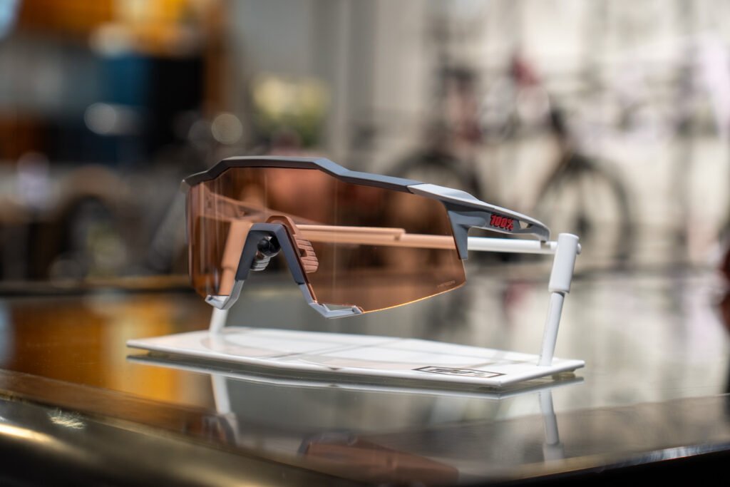 100%のサングラスは、ゴーグルメーカーに端を発したブランドであり、大型のレンズを特徴としています。こういったレンズは流行りのデザインなのはもちろん、視野が広くとれるため自転車競技との相性に優れ、非常におすすめです。