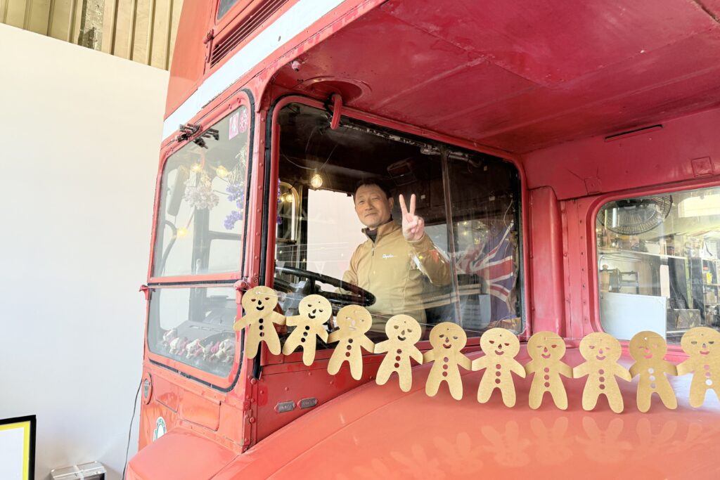 象徴的な真っ赤なロンドンバスの中で、週替わりの「世界のバインミー」や、こだわりのコーヒー・紅茶を楽しむことができます。