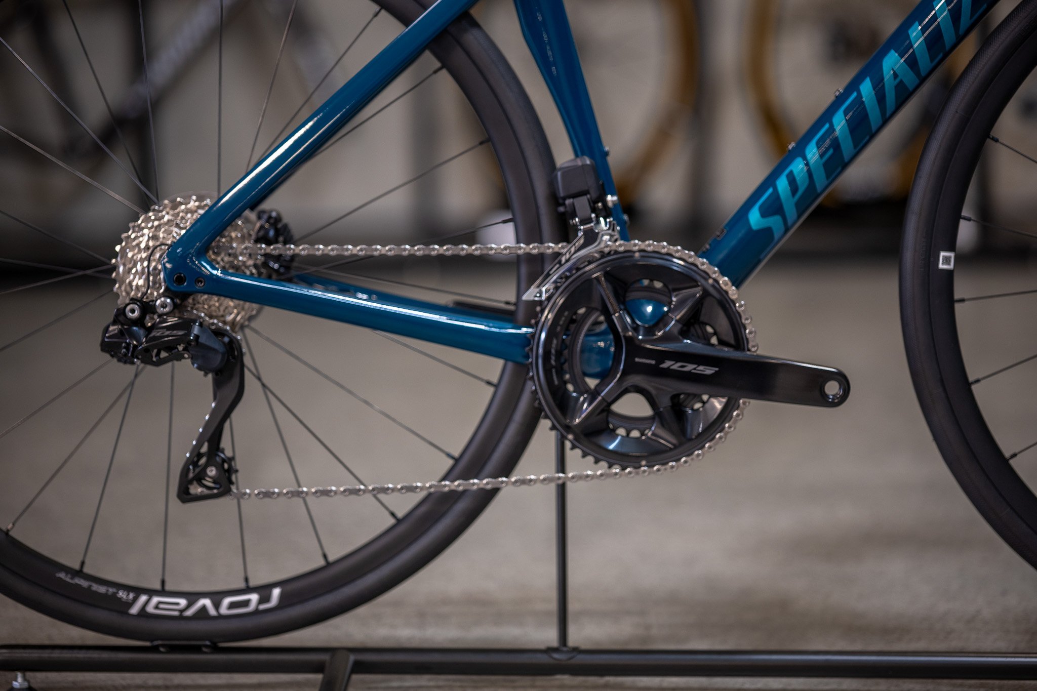 Tarmac SL7 に搭載したコンポーネントは Shimano 105 Di2。