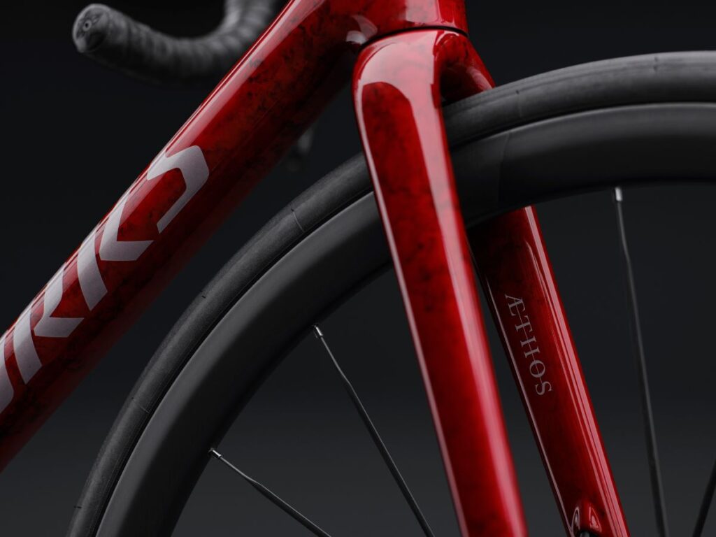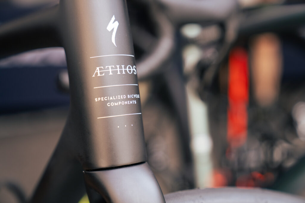 AETHOSは、量産カーボンフレームとして世界最軽量クラス(約595g)を実現しています。
